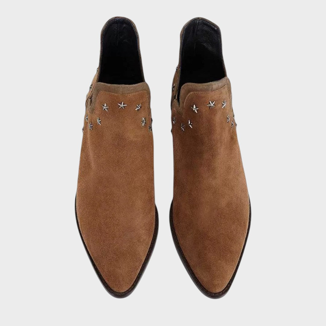 The Star ankle boots combine rustic charm with a modern touch, creating elegant, versatile, and irresistible footwear. Made from soft suede with a flawless finish, they stand out for their small star-shaped appliqués, adding delicacy and personality to their classic design.